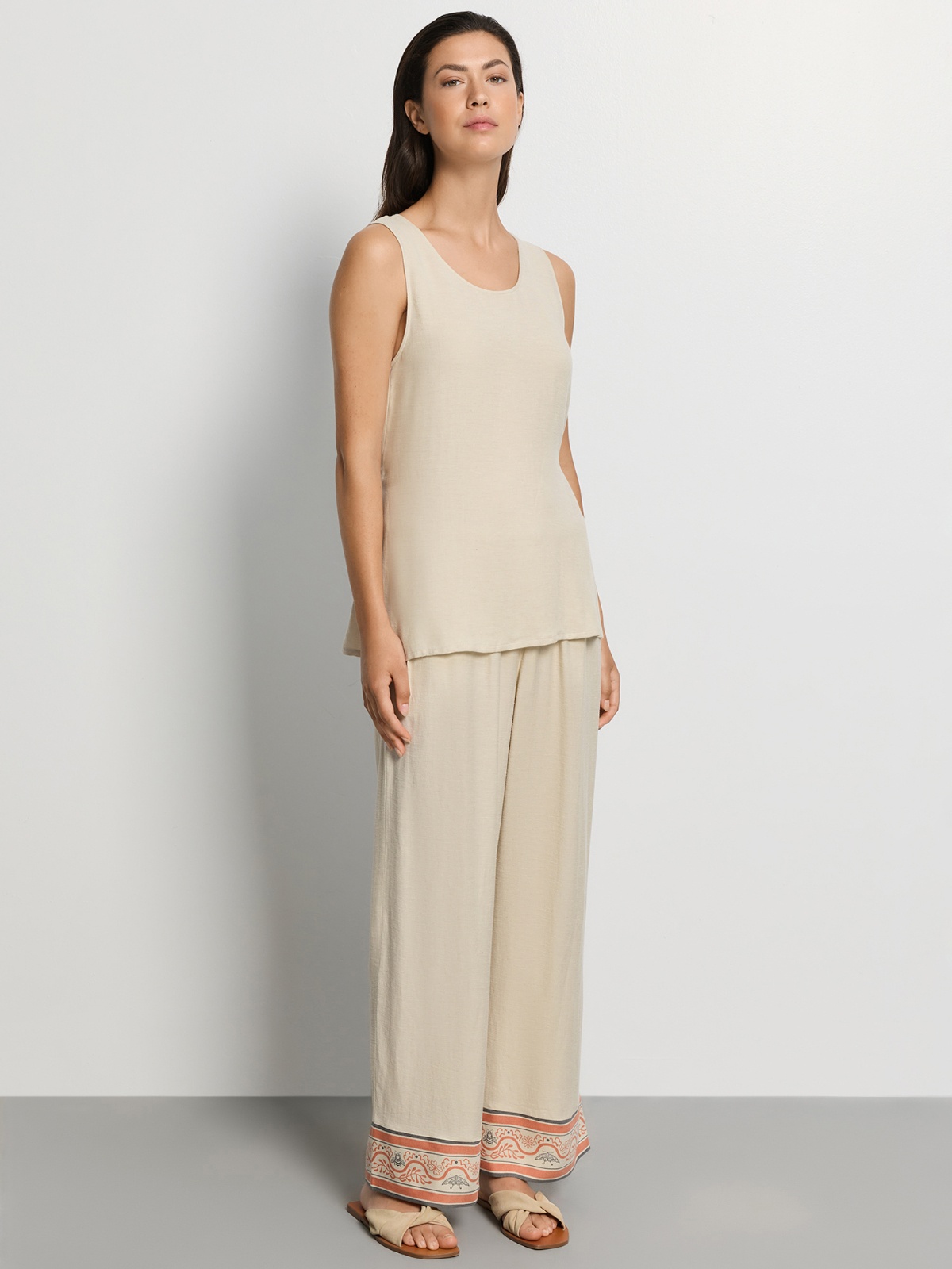 Pohodlné lněné kalhotky ze směsi přírodních materiálů ve zkrácené délce. Oceníte na cestování i volný čas.