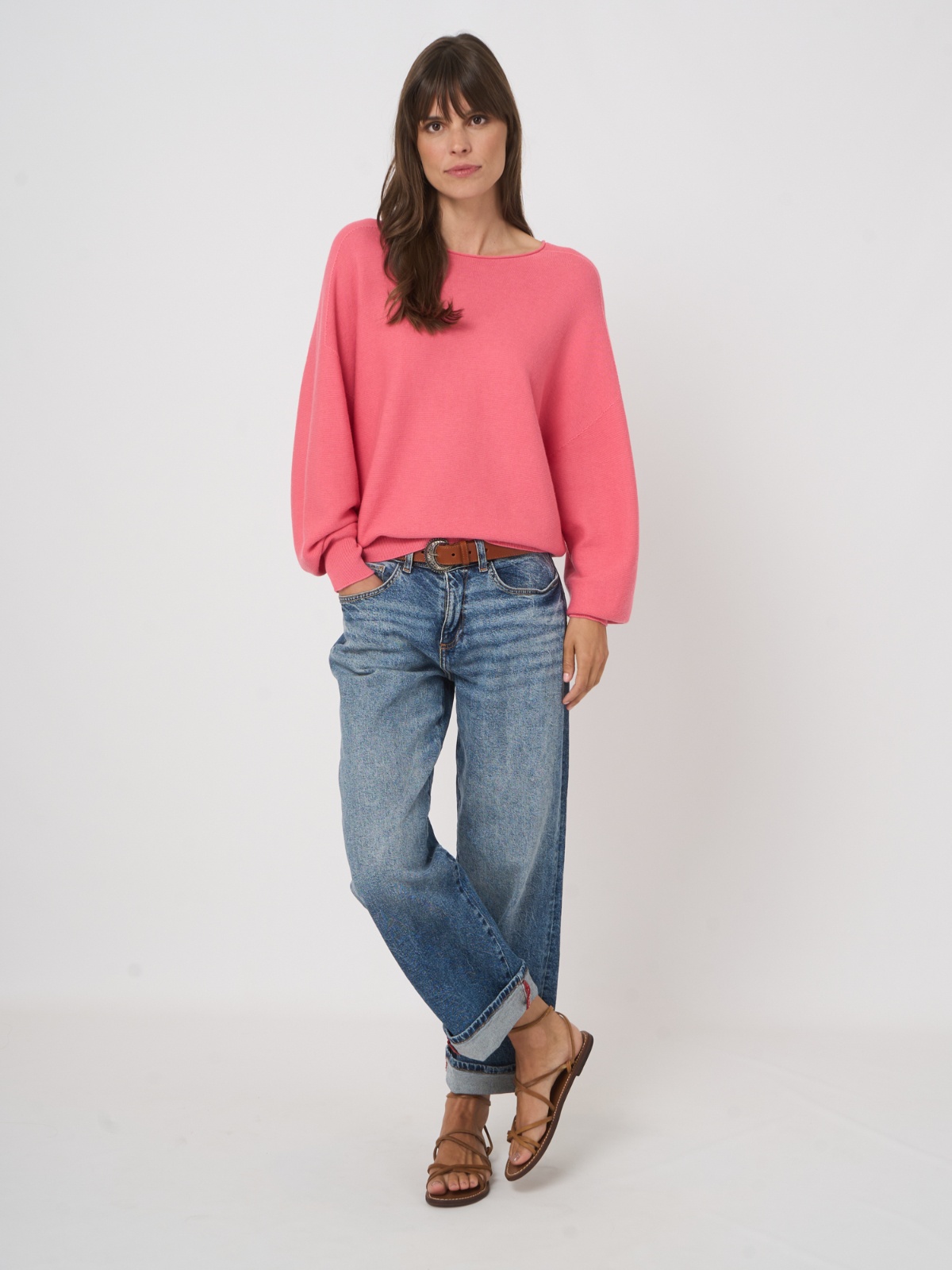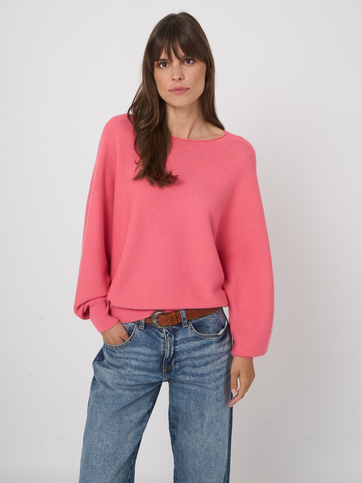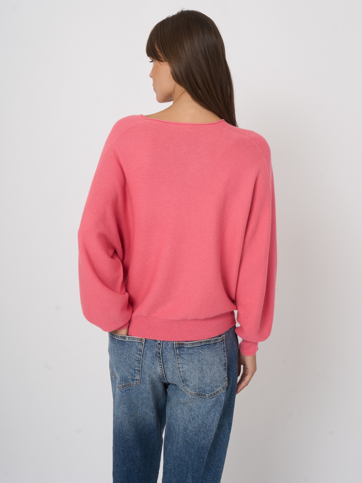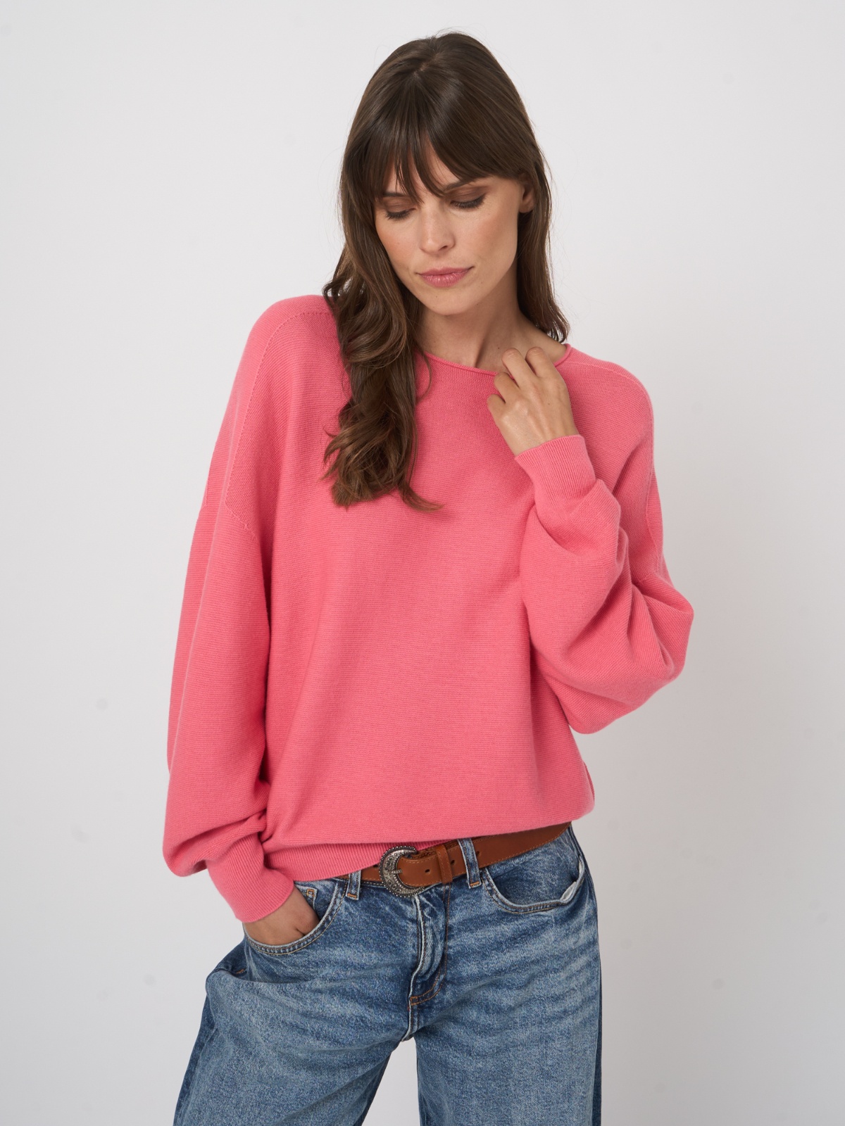 Lehký svetřík ve svěží barvě ze směsi bavlny a kašmíru. Má volnější střih s nápltety na konci rukává a v pase, což vytvoří pěkný podkasaný efekt. Výstřih je lodičkový.