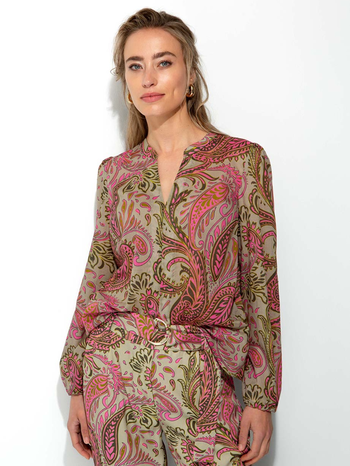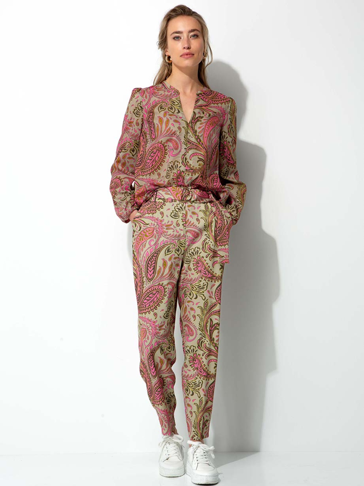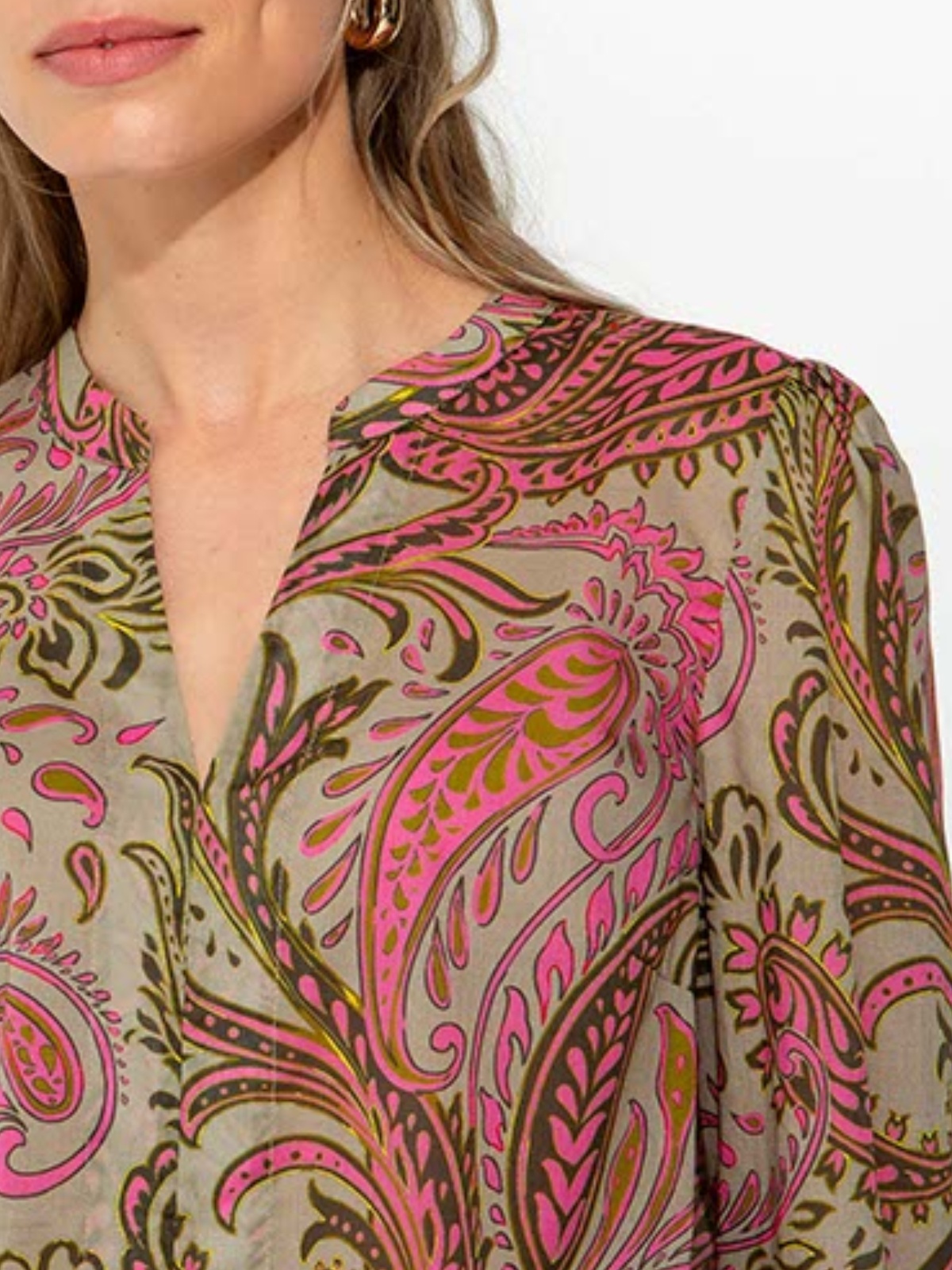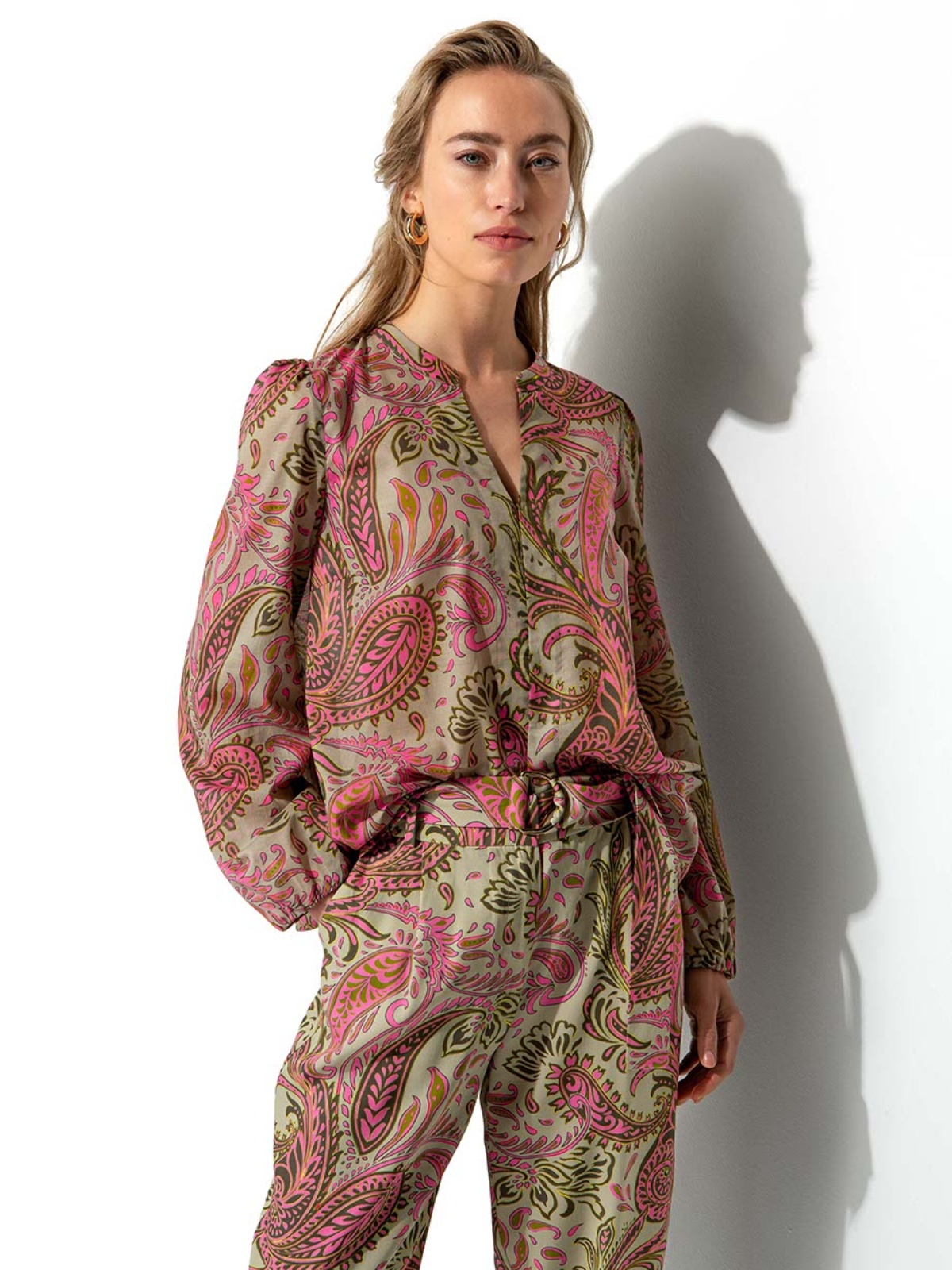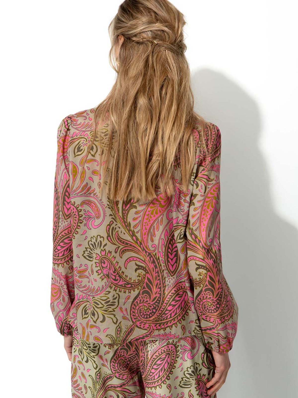 Elegantní halenka z lehké bavlny, která kombinuje tradiční paisley vzor s romantickým boho střihem.
