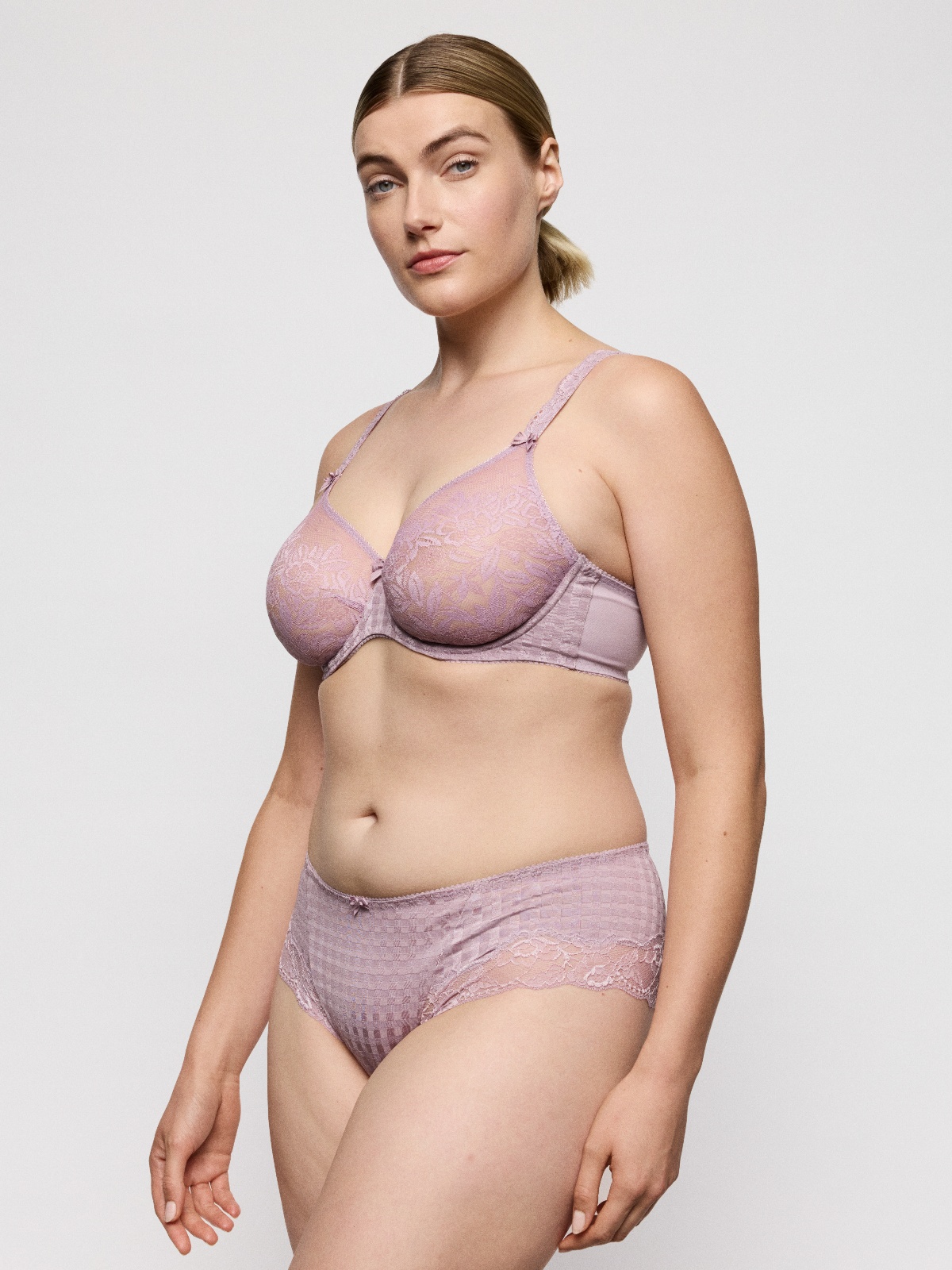 Podprsenka s nevyztuženými košíčky tvořenými teplem předtvarovanou krajkou s jemným květinovým motivem. Košíčky mají precizně střižené srdíčkové vykrojení, které zajistí, že tvar přilně k tělu. Pokud hledáte podprsenku s bezešvými košíčky, která působí zajímavě, tento model je pro vás ta pravá volba.
